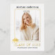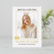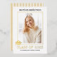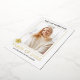 Class of 2023 typewriter real gold foil graduation photo invitation. The back includes a gold and white pattern with stripes.