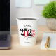 This paper cup features a modern red and black class of 2023 design. It offers custom text for the name of the graduate or the school name. The design is accented with a black graduation hat.
