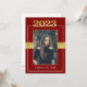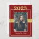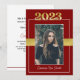 This maroon (red) & gold Class of 2023 graduation invitation can be customized to invite to commencement exercises and/or a graduation party in honour of the graduate. This would work well for male or female graduates. The front features a portrait of the graduating student prominently placed with the 'class of 2023' above the photograph and the grad's name beneath. There is also a faux ribbon across the middle behind the picture. The back contains all the information required to attend the festivities. A maroon (red) line and the 'class of 2023' are along the bottom edge. This invitation would work well for high school and college/university graduations.