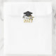 Cool, modern look "Class of 2023” graduation popular round shape envelope seals and stickers in stylish gold and silver numbers graphic design on a clean white contrasting background and a black graduation cap graphic design with a gold tassel. A sparkling gold star also adds to this fun design. Easily add the school name, graduate's name or any custom text to personalize onto the graduation hat. Great for the whole senior graduating class!