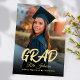 Elegant and modern Class Of 2024 Black Gold High School Graduation Invitation for graduate and graduation announcement. The invitation features a photo as a centerpiece with "grad" saying in bold script calligraphy, gold and black colour theme and glitter effects on the back. Perfect for college graduation announcement, high school graduation announcement, graduation 2024, class of 2024, college graduation and more.