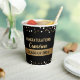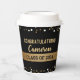 Celebrate the graduation party with personalized Class of 2024 Customizable Graduation paper cups! Black with gold white confetti.