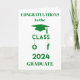 NewParkLane- Personalized Congratulations Graduation Greeting Card, with 'Class of 2024' in fun green typography, with hanging letters, and a green graduation cap.