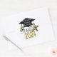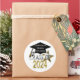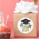 Cool, modern look "Class of 2024” graduation popular round shape envelope seals and stickers in stylish gold and silver numbers graphic design on a clean white contrasting background and a black graduation cap graphic design with a gold tassel. A sparkling gold star also adds to this fun design. Easily add the school name, graduate's name or any custom text to personalize onto the graduation hat. Great for the whole senior graduating class!
