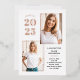 These modern and stylish grad party invitations feature three photos of the graduate, plus their 2024 graduation year in bold, rose gold foil text on a simple white background. Plenty of gold foil accents add an elegant touch to the front of the card.