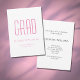 Graduation Class of 2024 Grad party invitation with a minimalist design. With pink and black typography customizable lettering, you can add your own text. A simple invite to plan that special celebration.