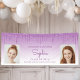 Welcome graduation party guests or simply announce her achievement with this chic, glamourous photo banner, featuring a sparkly purple faux glitter drip border and purple ombre background. Easily replace the two sample images with photos of the graduate. Personalize it with her name in purple handwriting script, with the class year and school in sans serif font. Perfect for high school or college graduation.