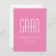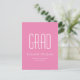 Graduation Class of 2024 Grad pink announcement postcard with a simple design. With white customizable lettering, you can add your own text. A cute way to celebrate that special graduate.