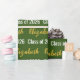 This graduation wrapping paper is forest green. This elegant wrapping has a text pattern for the graduate's name and Class of 2025. The name (Shown: Elizabeth) appears in an elegant faux (not foil) gold script. The other text is white. All of the text can be edited.