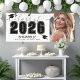 This classic yet modern graduation party banner is the perfect way to celebrate the Class of 2025. The design is arranged with the graduation details on the left side, featuring "Class of 2025" in bold black and white, accented with elegant grey script. Two graduation cap icons add a festive touch, while space below allows for the graduate’s name and school, creating a personalized centerpiece for the celebration.