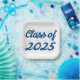 Graduation paper plate with Class of 2025 in 3D blue text. Available in several styles and sizes.