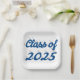 Class of 2025 blue script graduation paper plate