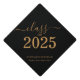 Perfect custom graduation cap for the graduate! Celebrate your grad's accomplishment in style with this graduation cap topper. Design features "Class of 2025" elegant gold typography text against a black background. Personalize this product by adding your graduation year, grad's name and school details. Easy to customize. Congratulations!