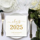 Stylish elegant custom graduation party supply! Celebrate the graduate's accomplishment in style with this trendy graduation paper napkin. Design features "Class of 2025" in gold font on a clean white background. Personalize this product by adding the name and school name. Easy to customize. Matching graduation party supplies available. Congratulations!