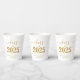 Stylish elegant custom graduation party supply! Celebrate the graduate's accomplishment in style with this trendy graduation party paper cups. Design features "Class of 2025" in gold font on a clean white background. Personalize this product by adding the name and school name. Easy to customize. Matching graduation party supplies available. Congratulations!