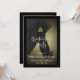 Elegant gold and black designer grad announcement is ideal for college at any level graduate. Traditional, formal design features gold class of charm on the dangling black mortarboard tassel in luxurious gold metal effect. Stylish classic swirls in the background add the perfect touch of elegance. Easily personalized with your name, school, post-graduation reception and other information.