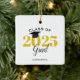 This graduation Christmas ornament is a perfect gift for the class of 2025 graduate. The design features the year in gold with a mortarboard graduation hat. Personalize with graduate's name.