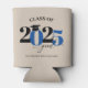 This graduation can cooler boasts a modern blue and black design with personalized text for the school name or the grad's name. The message says: Class of 2025 Grad, and it's complemented by a stylish black graduation cap accent.