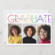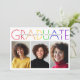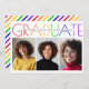 Class of 2025 Graduate rainbow photo collage Invitation. This simple yet stylish graduation invitation for the Class of 2025 features a modern, minimal design with a vibrant rainbow twist. A photo collage with three images takes centre stage alongside the text "Graduate" in a colourful font. The back of the invitation complements the front with a diagonal rainbow-striped pattern.