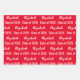 The wrapping paper sheets are bright red. All of them have a text pattern for the graduate's name and Class of 2025. The name (Shown: Elizabeth) appears in an elegant white script. The other text is also white. All of the text can be edited.