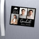 Modern Class of 2025 black graduation magnetic announcement card featuring 3 photos and "Graduate" in a contemporary bold white script. Add the grad's name, class year and high school or college in simple white typography.