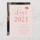 Elegant and simple graduation party invitation template for high school or college graduates! The typography text against the pink background says "Class of 2025" in modern script font. Customize this product by adding the graduate's name, school, and party information.