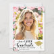 Create a unique custom graduation announcement with your graduate's photo for the class of 2025. This design is decorated with a graduate cap and diploma illustrations in golden yellow colours and pink roses in watercolor style. The template makes it easy to personalize the grad announcement with a name, year, school name, photo and other text. Text is in black on this design.