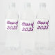 Graduation water bottle label with Class of 2025 in 3D purple text.