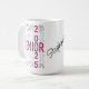This personalized mug design features the word "SENIOR" repeated multiple times in a bold, black outline font. The numbers "2" and "5" are interspersed within the word "SENIOR" in a vibrant, glittery pink colour. The central "SENIOR" is filled with the same glittery pink pattern, and the phrase "class of" is elegantly scripted across it in white. This design celebrates the graduating class of 2025 with a stylish and eye-catching look, perfect for commemorating this special milestone.