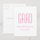 Graduation Class of 2025 Grad announcement postcard with a simple design. With pink customizable lettering, you can add your own text. A cute way to celebrate that special graduate.