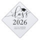 Perfect custom graduation cap for the graduate! Celebrate their accomplishment in style with this graduation cap topper. It says "Class of 2025" in typography text against a white background. Personalize this product by adding their name and school name.