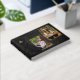 Elegant, dignified classical black designer grad guestbook graduation party decoration accessory for signatures is ideal for college, university, trade school, high school or any level graduate. Traditional, formal yet simple design features gold charm on the dangling mortarboard tassel in luxurious gold metal effect. Stylish classic swirls in the background add the perfect touch of unique modern elegance for boys or girls. Easily personalized with your name, school, post-graduation reception and other information. You can also customize the background color by entering all your details, then clicking "customize it", then clicking "edit", and choosing a background color. Be sure to customize the front and back backgrounds.