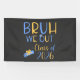 Bold text in blue and yellow reads "BRUH WE OUT" above a smaller text "Class of 2026," accompanied by a rolled diploma with a bow. The design has a playful and celebratory tone aimed at graduates. Whether from elementary school, middle school,high school or college….graduation is a a time to celebrate. And as Gen Alpha is known to say, “Bruh, we out!
