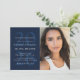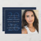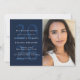 For your high school or college graduate, this one-photo card can be used as either a party invitation, an announcement or both! Featuring a big year behind the party details, there's room for parents to announce their grad, a full name and all the party details. The back has a white stripe pattern. The color is navy blue but other colors are available in the collection by Lea Delaveris Design