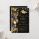 Elegant graduation party invitations featuring a stylish black background, gold sparkly glitter, balloons