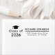 Elegant White graduation return address label featuring a black grad cap and the graduate's name and address in modern .