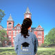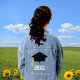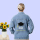 Black graduation cap and graduation year number Denim Jacket. Text can be personalized.