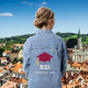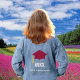 Burgundy graduation cap and graduation year number Denim Jacket. Text can be personalized.