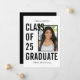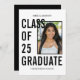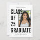 Your graduate's photo, surrounded by large bold lettering "CLASS OF 25 GRADUATE", finished with your name and high school. On the back, you can share a story or the graduate's bio of interests and activities, or delete the text and leave blank. Add your own photo and other details by following the "Personalize" link. The colours can also be changed, to match your graduate's school colours, by using the edit menu. If you would like assistance, please feel free to reach out to me via email at susanmingaydesigns@gmail.com