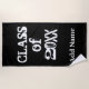 Class Of Enter Year Graduation Customized Beach Towel makes a great gift idea for a graduate! Customizable colour black background with distressed white typography "Class of" student graduation year followed by personalized name.