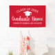 Celebrate the graduate with a custom banner. Personalize the banner and hang it up to make an eye-catching graduation party decor. You can also hang it at home or at an event. Make sure to change any colours and other design elements in the advanced design area.