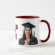Another sleek style mug design. Your graduates photo of either side of the mug, with the class year in the centre. This style mug is available in 11 or 15 oz. The maroon handle and inside colour are available in nine other colours.