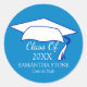 Decorate your graduation invitations and graduation announcements with these cornflower medium blue and white envelope seals. They feature a white graduation cap at the top. Then the phrase Class of 2017 is written below. Along with the graduate's name is chic capital letters and their high school below. You can easily personalize the text, change the colour and the size. You can even change the background colours to match your school colours or graduation party decor.