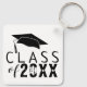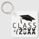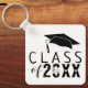 Modern Class of Typography Graduation Cap keychain. Trendy black typography with black graduation hat. Customize with the year number. Make a great gift and keepsake for a graduate.