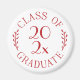 Chic red on white typography emblem reads: CLASS OF [YEAR] GRADUATE with the words curving around the year in the middle with curved botanical leaves along each side of the circular design. Customize the year in the sidebar. Makes a fun graduation gift.