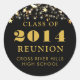 Personalized and custom colour high school or college class reunion round stickers or envelope seals for any graduating class (the year is editable) with your class year and school name accented with gold stars and string lights (shown in black and gold). CHANGES: Change the text font style, colour, size or placement and/or the background colour in EDIT. ASSISTANCE: For help with design modification or personalization, colour change, resizing, transferring the design to another product or you would like coordinating items, contact the designer BEFORE ORDERING via the Zazzle Chat MESSAGE tab below or email makeitaboutyoustore@gmail.com.