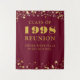 High school or college class reunion banner sign or photo op backdrop for any graduating class (the year is editable) and/or photo booth backdrop featuring your class year, school name and gold stars and string lights against an editable burgundy or maroon background colour you can easily change to your school colour. General enough to reuse for all your reunions. CHANGES: The background and text colours can be changed in EDIT. TAPESTRY OPTIONS: The sample is shown in the 50x60" size--other sizes are available on the ordering page. ASSISTANCE: For help with design modification or personalization, colour change, resizing, transferring the design to another product or you would like coordinating items, contact the designer BEFORE ORDERING via the Zazzle Chat MESSAGE tab below or email makeitaboutyoustore@gmail.com.