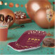 Personalized burgundy maroon high school or college class reunion paper plates for any graduating class (the year is editable) with your class year and school name. The design features gold stars and string lights against an editable maroon background colour you can change to your school colour. CHANGES: The background and text colours can be changed in EDIT. PLATE OPTIONS: The sample is shown in the 7-inch square; other sizes and shapes are available on the ordering page. ASSISTANCE: For help with design modification or personalization, colour change, resizing, transferring the design to another product or you would like coordinating items, contact the designer BEFORE ORDERING via the Zazzle Chat MESSAGE tab below or email makeitaboutyoustore@gmail.com.