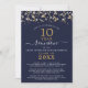 Class Reunion Navy Blue Gold Confetti Streamers Invitation