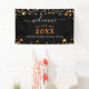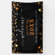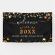 Create a class reunion black and orange welcome banner sign featuring the title WELCOME in a modern fancy script typography, class of year and name of your school, college or university or other custom text accented with gold and orange stars and string lights. BANNER OPTIONS: The sample is shown in the 3x5' size; other sizes are available on the ordering page as well as the option of transferring the design to a foam board, poster, tapestry or other product or have the designer convert it to a DIGITAL DOWNLOAD file for printing locally BEFORE ordering. ASSISTANCE: For help with design modification/personalization, colour change, resizing, transferring the design to another product or if you would like coordinating items, contact the designer BEFORE ORDERING via Zazzle Chat or makeitaboutyoustore@gmail.com.